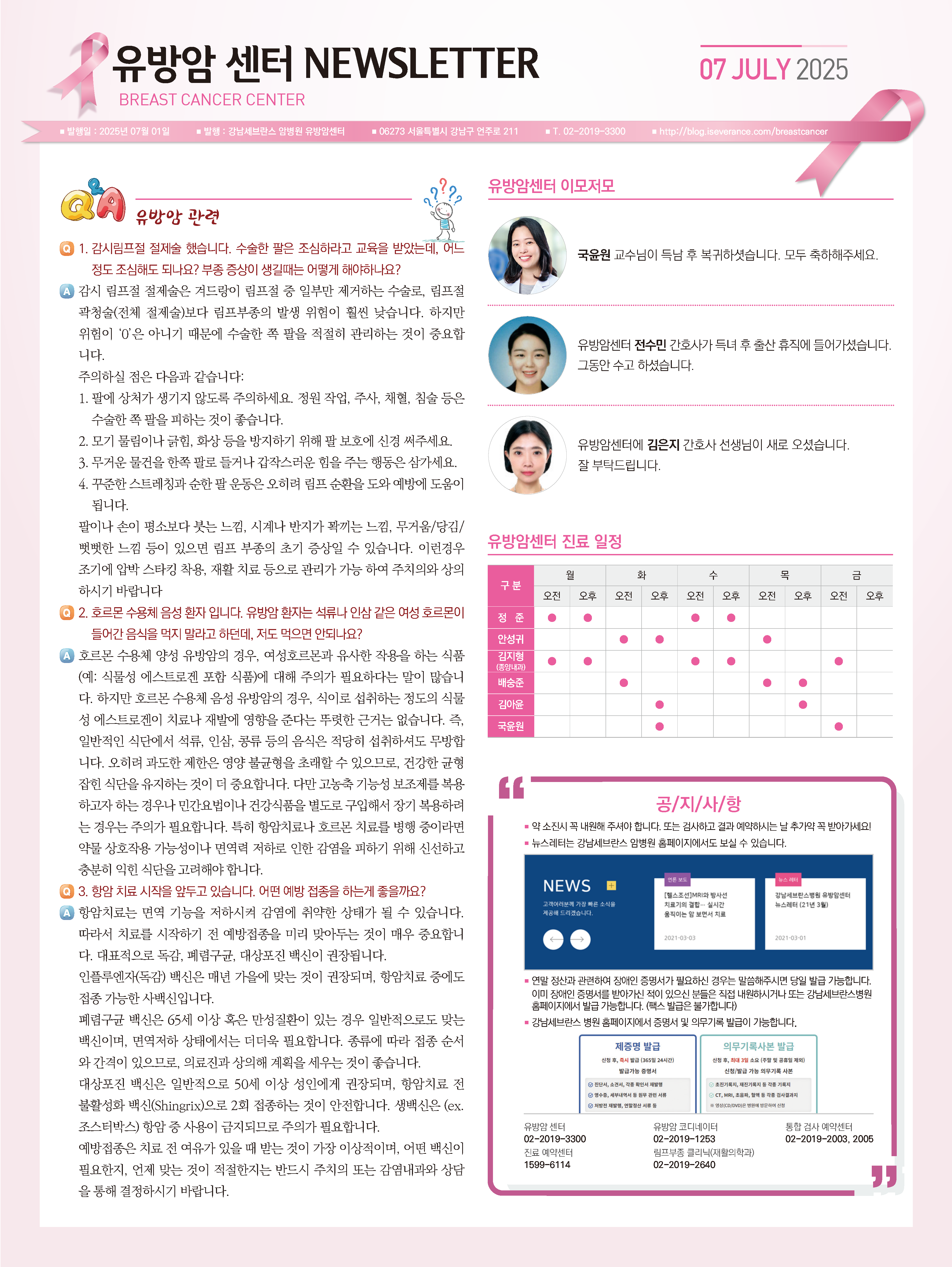 뉴스레터 강남세브란스암병원 유방암센터 뉴스레터 (2025년 7월) 관리자 2025-07-01 조회수 83 목록 이전글강남세브란스암병원 뉴스레터 (2025년 4월) 다음글강남세브란스암병원 유방암센터 뉴스레터 (2025년 10월)